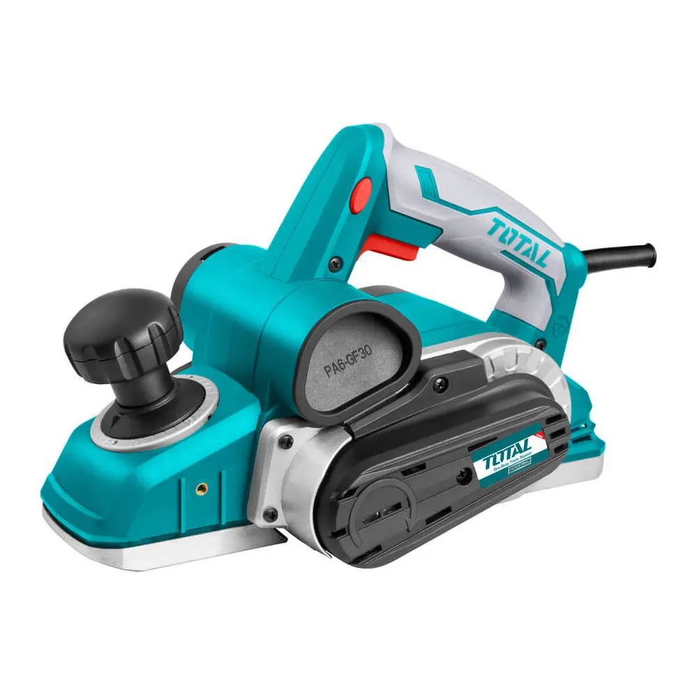 Herramienta robusta de calidad industrial, recomendada para carpintería, especialmente para hacer desbastes, rebajes y biselados, contiene base de aluminio resistente, cubierta lateral de aluminio, sistema de correas de enfriamiento automático, incluye 2 hoja de cepillo, 1 correa, 1 guía paralela y 1 guía de profundidad.